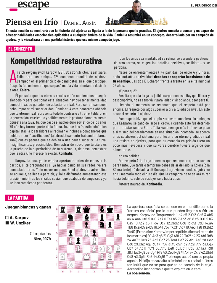 Don Alejandro. Un día recibí una llamada de un señor que decía que a ver cómo se podría articular algo relacionado con el ajedrez en el centro penitenciario de Burgos. Sí a todo fue mi respuesta. Una llamada que no duró más de 3 minutos pero que ya lleva 5 años en marcha. Desde entonces […]
